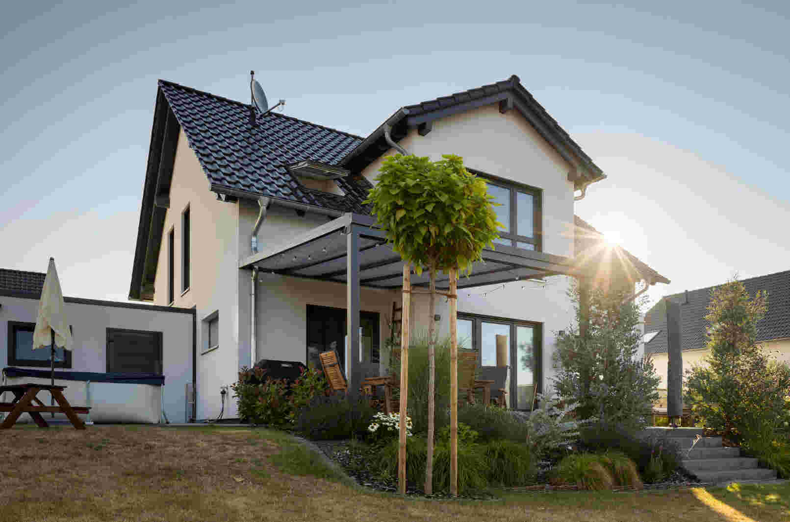 Bei der Feinplanung stießen die Königs auf eine Herausforderung: Das SENTO 403 entsprach zunächst nicht ganz dem Bebauungsplan, da das Dachgeschoss einige Quadratmeter zu groß war. Doch der FingerHaus-Berater fand eine elegante Lösung, indem er den Kniestock leicht reduzierte und das Sitzbankfenster in einem Erker im Erdgeschoss platzierte, was sogar zu einer Vergrößerung des Erdgeschosses um vier Quadratmeter führte. So wurde der Lieblingsplatz sogar noch gemütlicher als geplant.
